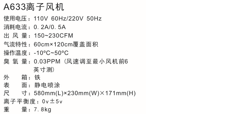 A633離子風(fēng)機(jī)